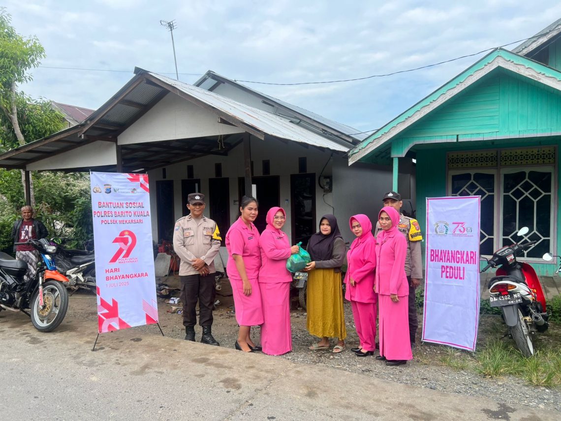 Barito Kuala, Menjelang peringatan Hari Bhayangkara ke-79, Polsek Mekarsari menggelar kegiatan Anjangsana dan bagikan bansos kepada masyarakat Kec. Mekarsari pada Rabu (25/6/2025)