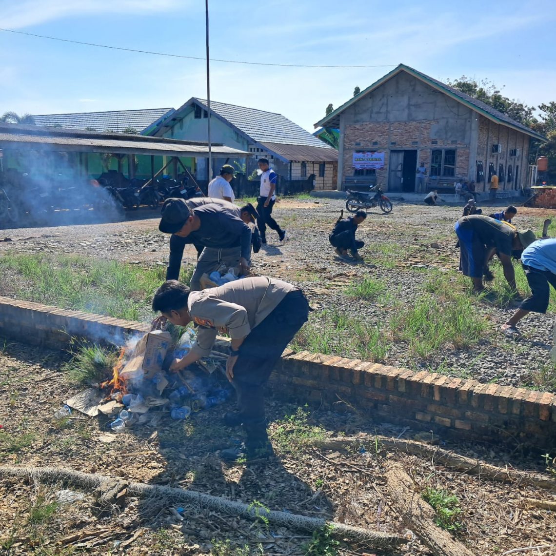 Meriahkan Hari Bhayangkara Ke-79 Polsek Wanaraya Gelar Bakti Religi bersihkan lingkungan Gereja GKE Sidomulyo