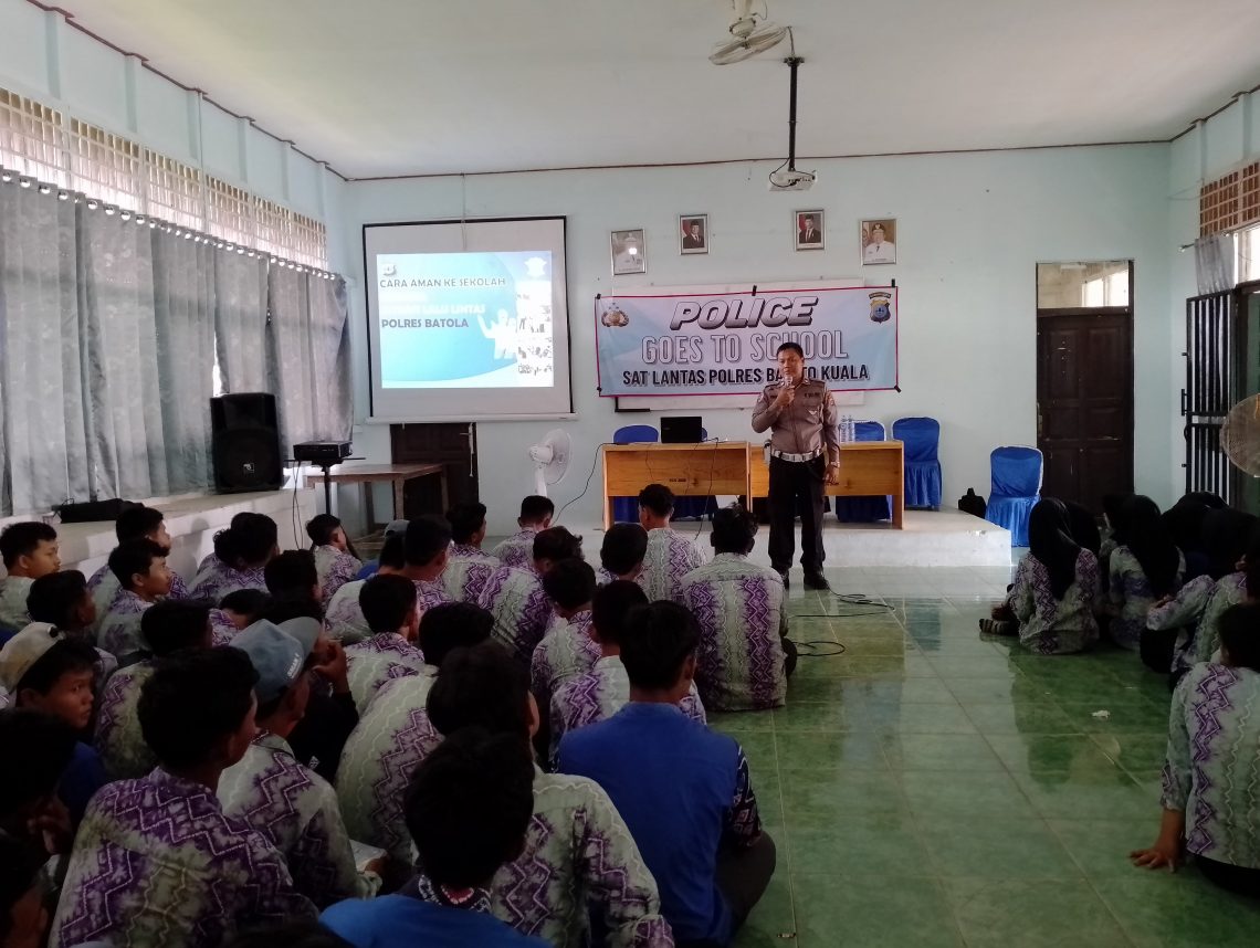 **Kalsel_Barito Kuala,* – Satuan Lalu Lintas (Sat Lantas) Polres Barito Kuala (Batola) menggelar kegiatan *Police Goes To School* di SMAN 1 Wanaraya pada Kamis (22/5/2025). Kegiatan yang berlangsung pukul 09.00–11.00 WITA ini diikuti oleh 100 siswa/siswi sebagai upaya edukasi tertib berlalu lintas dan pencegahan kecelakaan di kalangan pelajar.