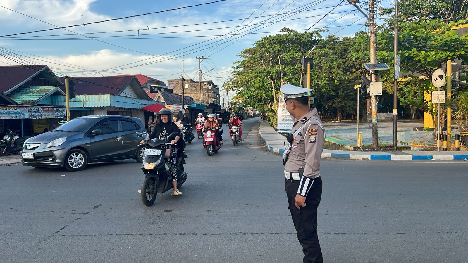Satuan Lalu Lintas Polres Batola Lakukan Pengaturan Lalu Lintas Saat Aktivitas Warga Meningkat